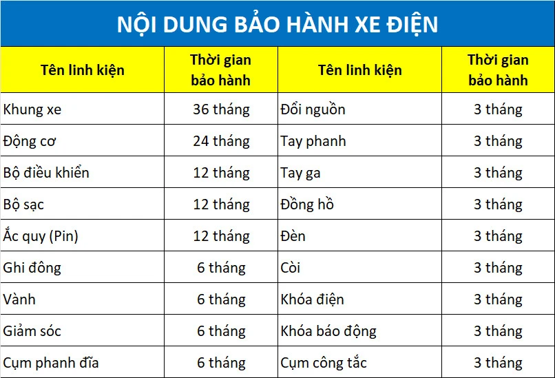 I. QUY ĐỊNH BẢO HÀNH: