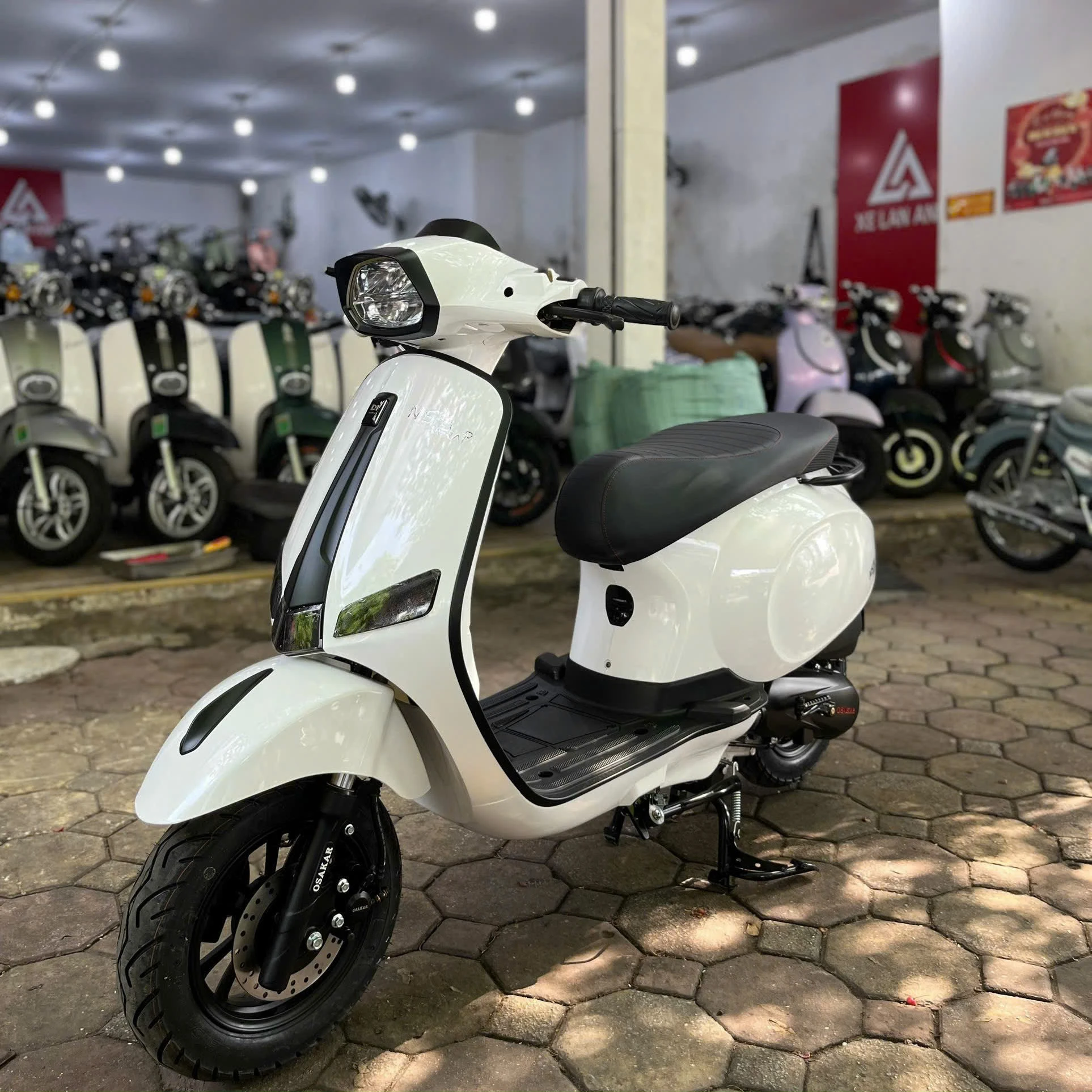 NISPA VERA P gây ấn tượng với thiết kế đẳng cấp, lấy cảm hứng từ dòng xe Vespa cổ điển. Đèn pha vuông LED hiện đại không chỉ tạo điểm nhấn thẩm mỹ mà còn cung cấp ánh sáng mạnh mẽ, giúp người lái di chuyển an toàn trong mọi điều kiện ánh sáng. Với kiểu dáng thanh lịch và màu sắc sang trọng, chiếc xe này mang đến vẻ đẹp vượt thời gian cho người sử dụng.