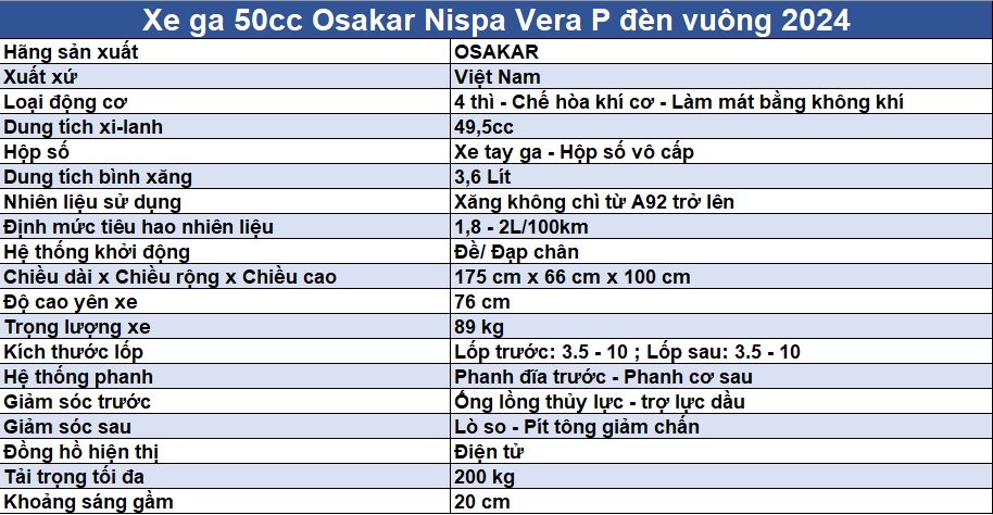 Xe ga 50cc Osakar Nispa Viva P đèn vuông 2025