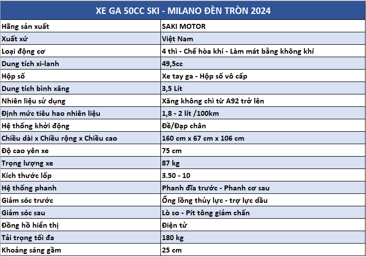 Xe ga 50cc Saki Milano đèn tròn 2025