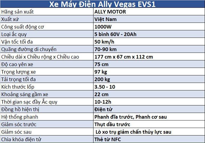 Xe máy điện Ally Vegas EVS là mẫu xe điện hiện đại, được thiết kế và sản xuất tại Việt Nam với công nghệ tiên tiến, đáp ứng nhu cầu di chuyển trong thành phố của giới trẻ và học sinh. Xe sở hữu động cơ điện 1000W mạnh mẽ, cho khả năng tăng tốc nhanh, vận hành êm ái, leo dốc mượt mà với vận tốc tối đa dưới 50km/h.