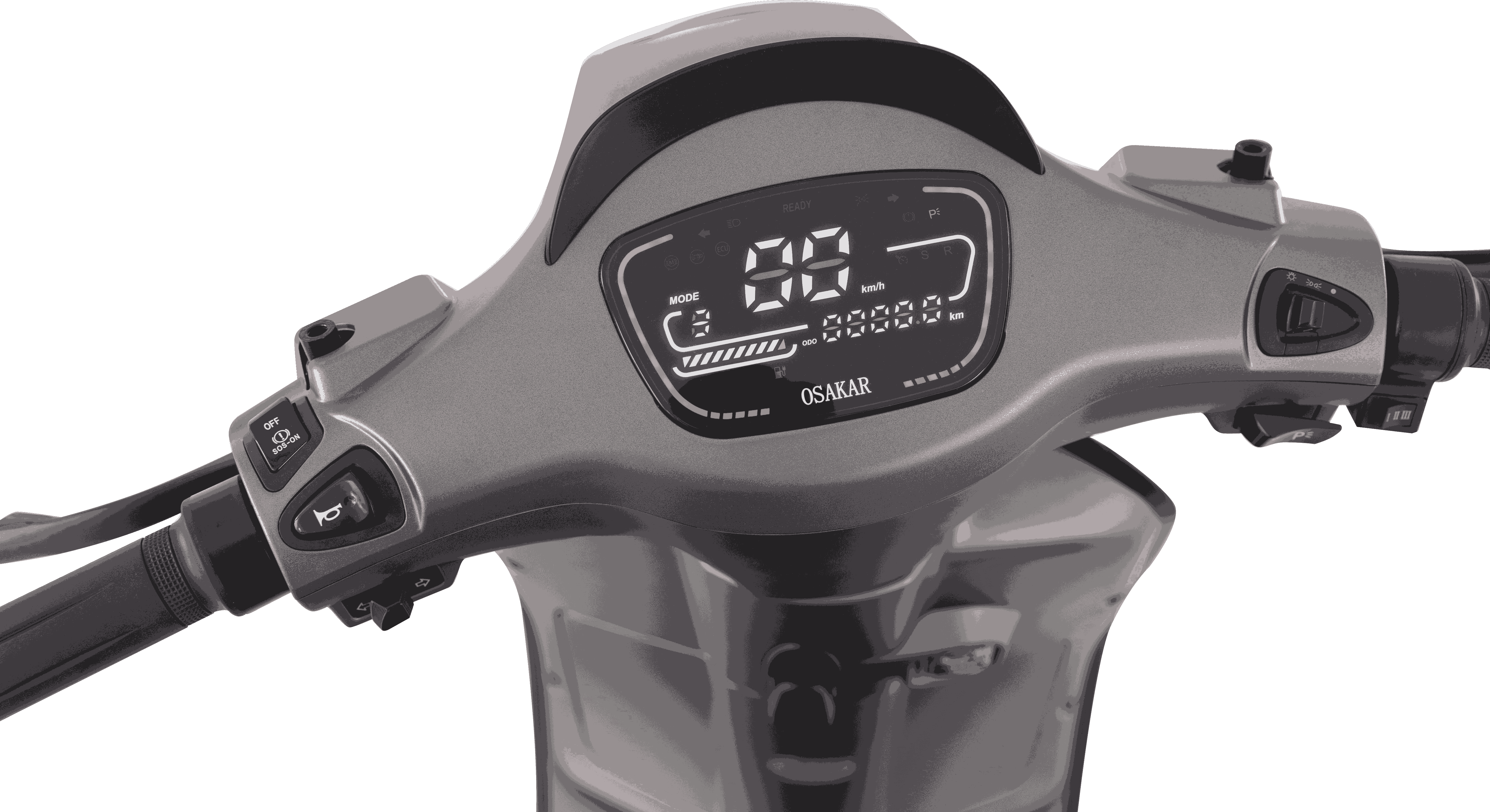 Xe còn được tích hợp màn hình điện tử full LED sắc nét, hiển thị đầy đủ các thông số như vận tốc, dung lượng pin, đèn báo xi nhan, chế độ lái… với độ sáng cao, dễ dàng quan sát dưới ánh nắng gắt. Đây là điểm nhấn hiện đại giúp người lái kiểm soát xe dễ dàng và chính xác hơn.