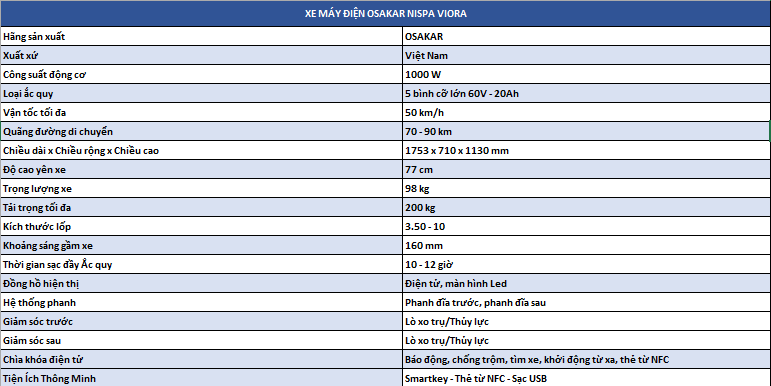 Xe máy điện Osakar Nispa Viora là một trong những dòng xe máy điện cao cấp , động cơ mạnh mẽ lên tới 1000W và cho quãng đường đi tới 70-90km/lần sạc , màu sắc siêu đa dạng , vận hành ổn định và bền bỉ . Xe không cần bằng lái , bảo hành lên tới 3 năm tại hệ thống Xe điện .xe máy Lan Anh