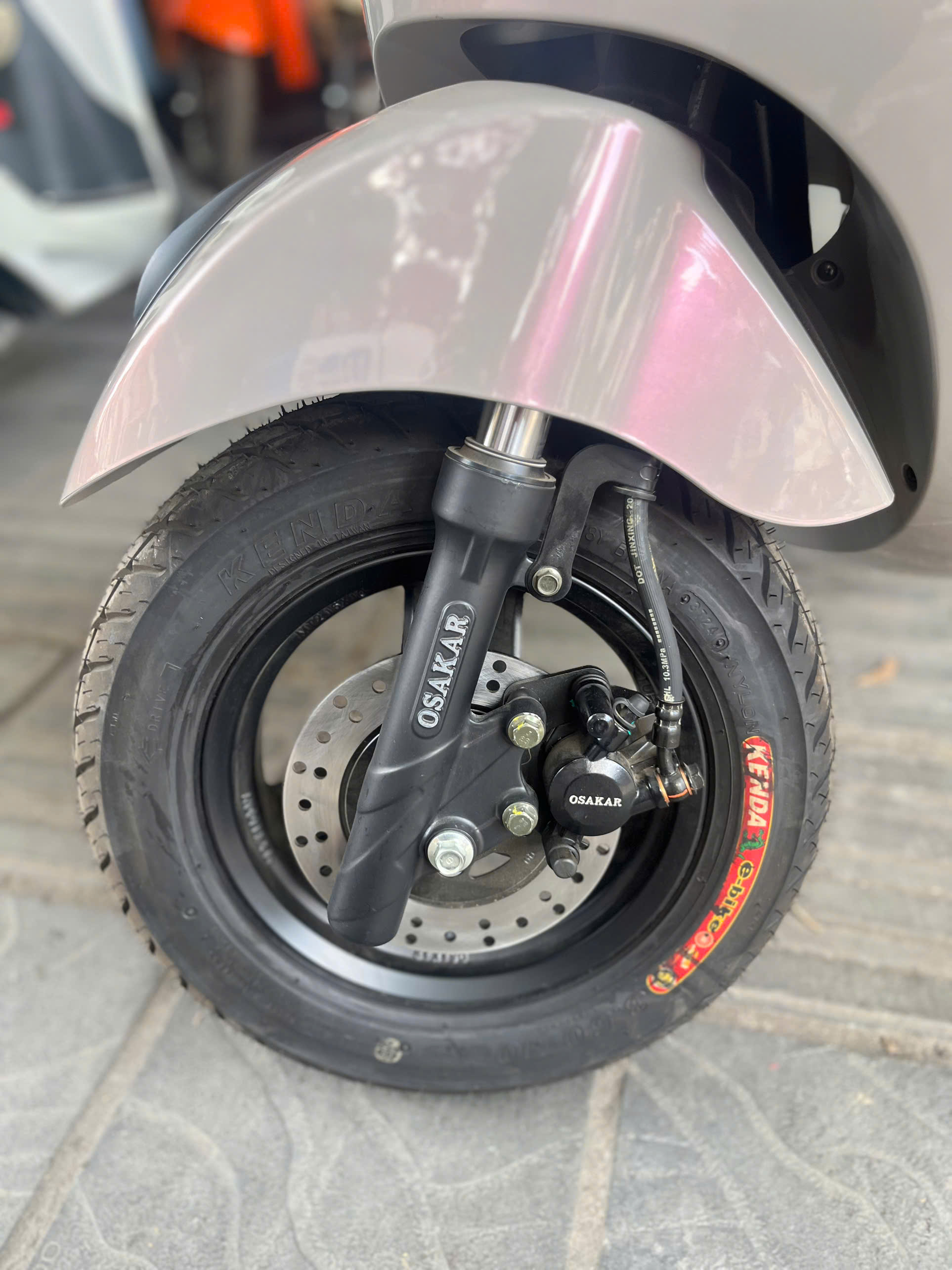 Hệ thống lốp : Xe sử dụng lốp không săm bản to, bám đường tốt và hạn chế trơn trượt khi di chuyển dưới trời mưa. Vành xe được làm từ hợp kim đúc chắc chắn, tăng độ ổn định khi vận hành. Hệ thống phanh trước là phanh đĩa, phanh sau là phanh cơ, đảm bảo an toàn cho người dùng trong mọi tình huống.