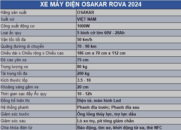 ĐÁNH GIÁ TỔNG QUAN XE ĐIỆN OSAKAR ROVA