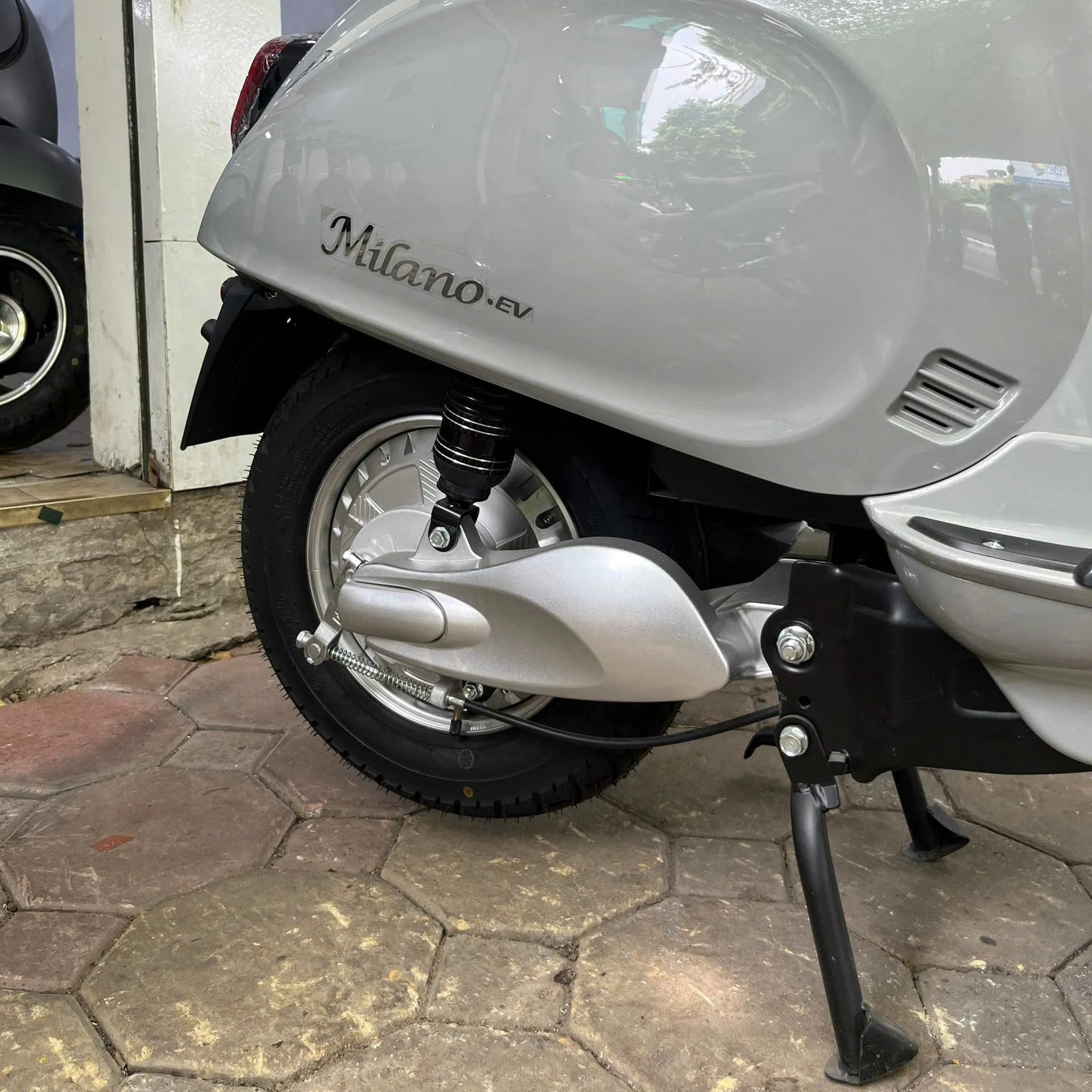 Lốp xe của Saki Milano được thiết kế với độ bám đường cao, giúp xe vận hành ổn định trong mọi điều kiện thời tiết, từ đường khô ráo đến ẩm ướt. Lốp xe cao su bền bỉ này không chỉ giúp xe dễ dàng vào cua mà còn giảm thiểu nguy cơ trượt khi di chuyển trên các bề mặt trơn trượt. Đây là yếu tố quan trọng giúp người lái cảm thấy an tâm và tự tin khi tham gia giao thông.