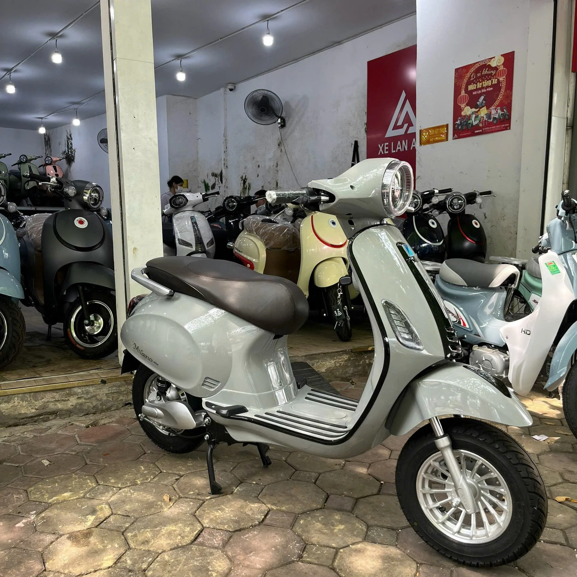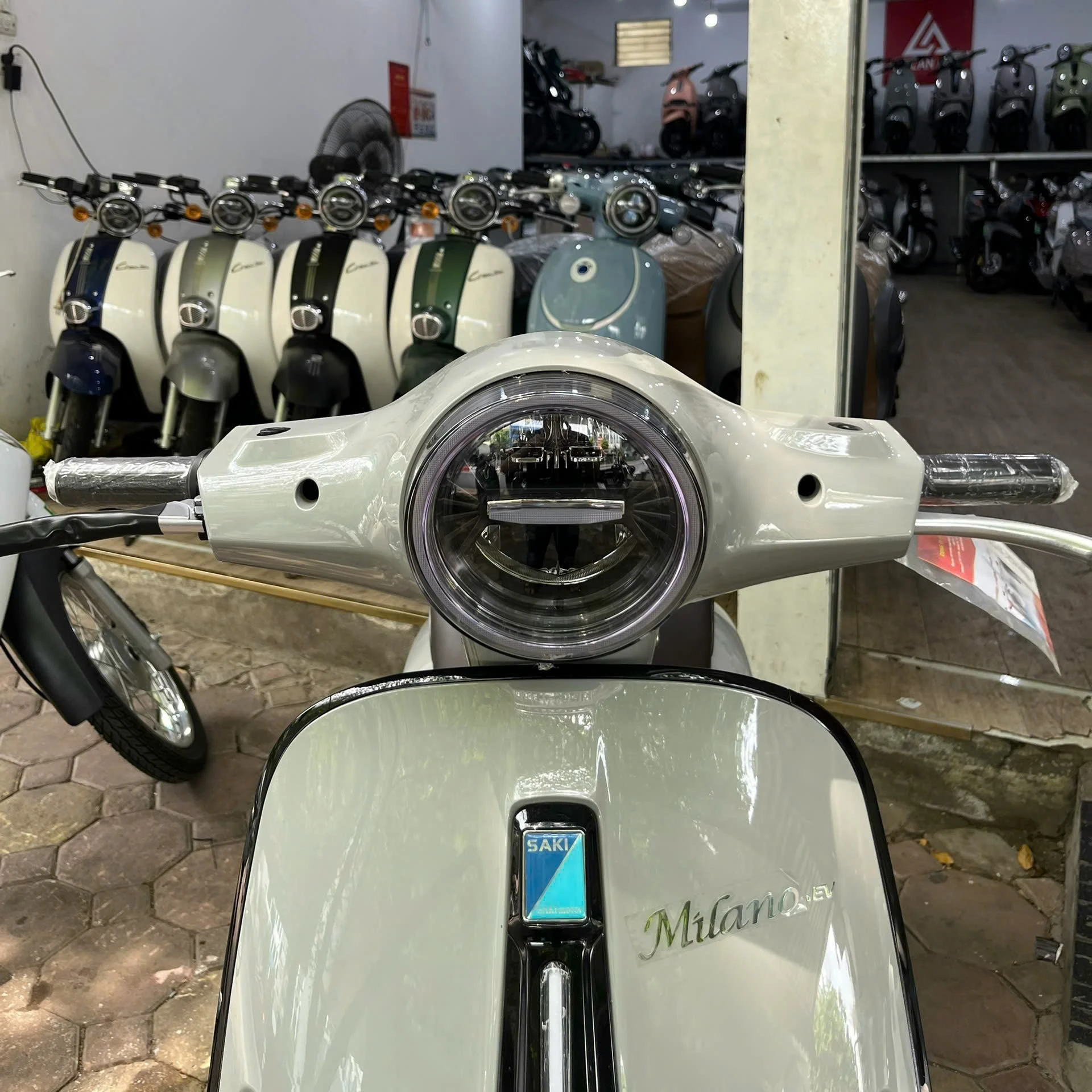 Xe máy điện Saki Milano.Ev đèn vuông
