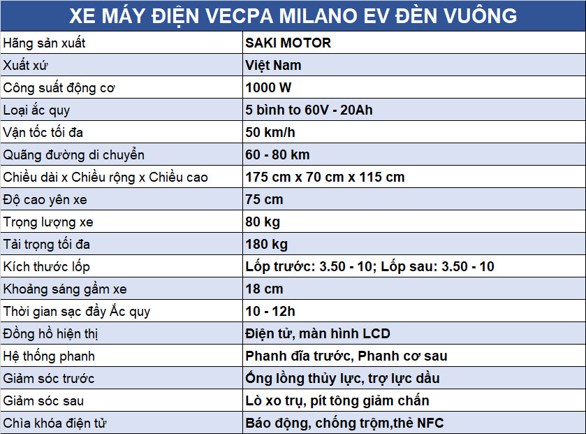 Xe Máy Điện Saki Milano.EV được bảo hành chính hãng lên đến 3 năm, mang đến sự yên tâm tuyệt đối cho người dùng. Với thiết kế thanh lịch, động cơ mạnh mẽ, hệ thống phanh an toàn, và các tính năng thông minh như khóa NFC và đồng hồ LCD, Saki Milano là sự lựa chọn hoàn hảo cho những ai muốn sở hữu một chiếc xe máy điện tiết kiệm năng lượng, an toàn, và thân thiện với môi trường. Đây là phương tiện lý tưởng giúp bạn di chuyển trong đô thị một cách nhanh chóng, tiện lợi và hiện đại.