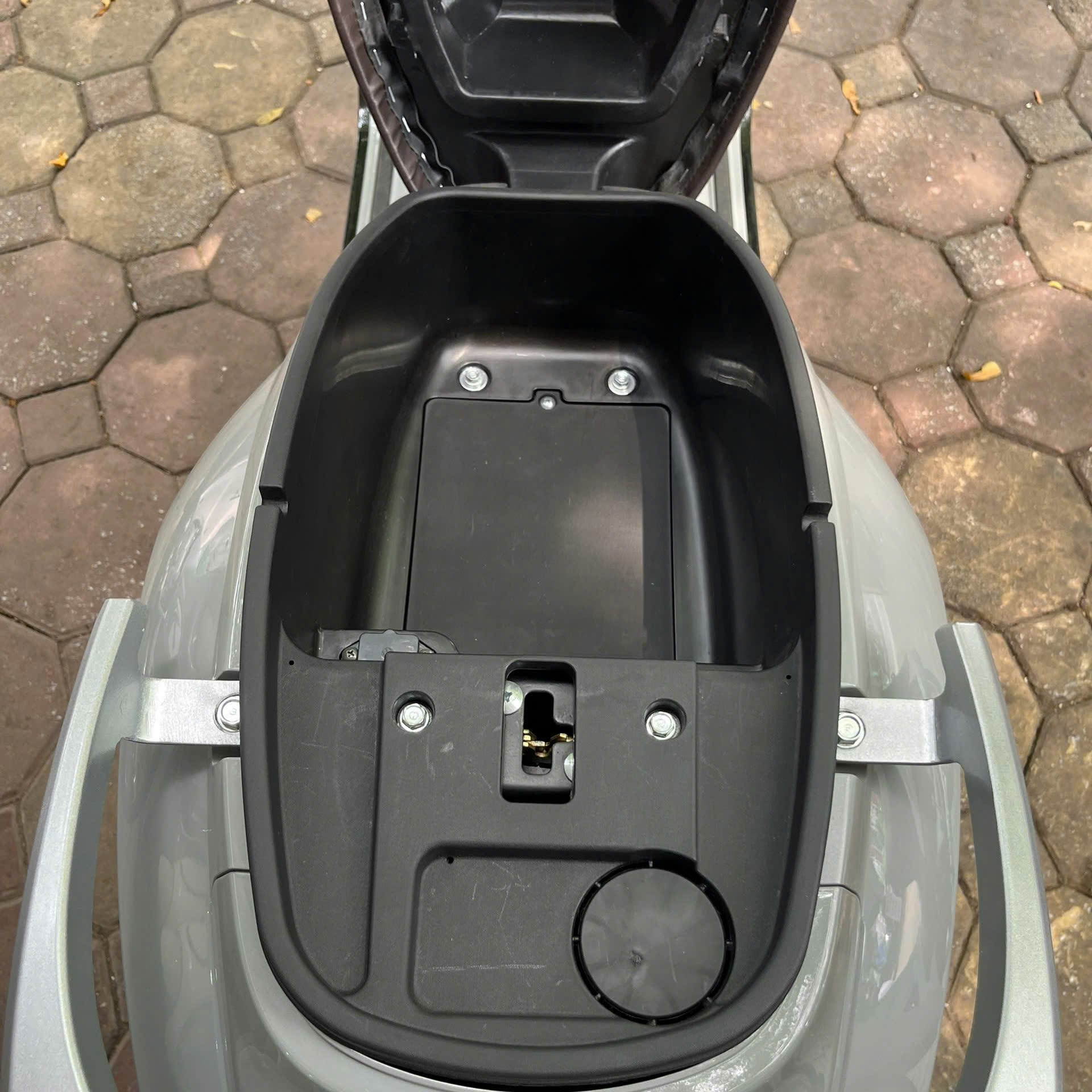 Cốp xe của Saki Milano có dung tích rộng rãi, dễ dàng chứa các vật dụng cá nhân như mũ bảo hiểm, túi xách hoặc các đồ dùng khác. Thiết kế cốp xe kín đáo giúp bảo vệ đồ đạc khỏi nước mưa, mang lại sự tiện lợi và bảo vệ tài sản của bạn khi di chuyển trong những ngày mưa.