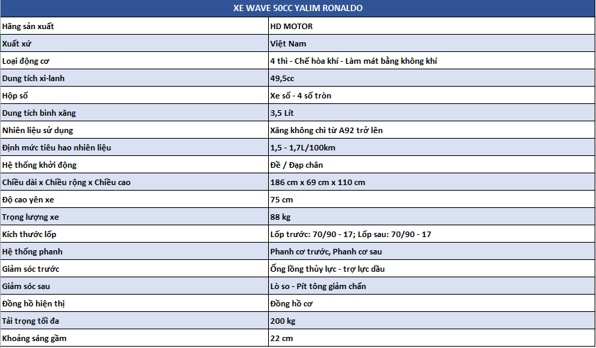 Xe wave HD Yalim Ronaldo 50cc mặt nạ thường